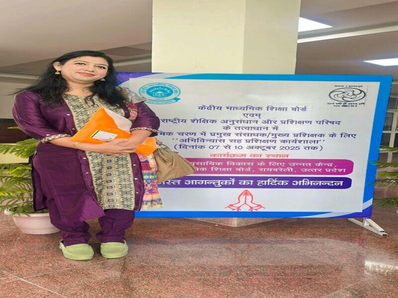 Ms. Nidhi Jain proudly represented Choithram School, Manik Bagh, Indore, at the 4-Day Orientation cum Training Workshop for Key Resource Persons (Preparatory Stage), jointly organized by CBSE and NCERT at ACCPD, Raebareli. The workshop highlighted innovative pedagogies promoting experiential, play-based, and competency-driven learning aligned with NCF-SE 2023. Engaging sessions on art integration, storytelling, holistic assessment, and problem-solving inspired all participants. Ms. Jain showcased the school’s exemplary practices under “No Child Left Behind,” emphasizing hands-on, project-based, and research-oriented learning. Her participation reflected professional growth, collaboration, and a strong commitment to educational excellence.