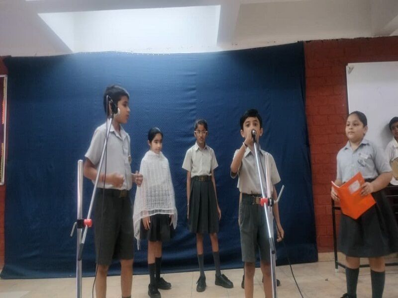 The program began with an introduction to the history of World Photography Day. To bring their ideas to life, the students used props such as an old camera, a freedom fighter’s flag, a tree, a river, a butterfly, and even a mobile phone. Each scene was thoughtfully accompanied by songs like “Vaishnav Jan…”, “Desh Mere…”, and “Panchee Sur Mein Gaate Hain..” , which added depth and vibrancy to the performances.