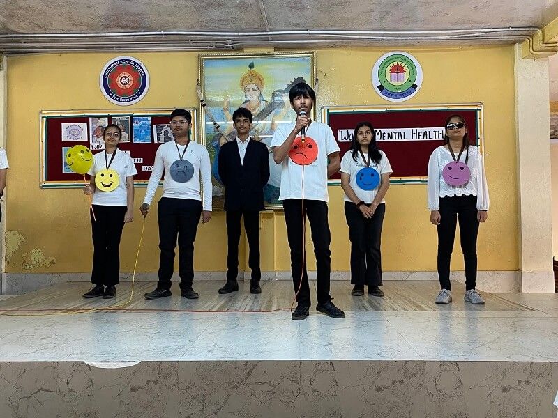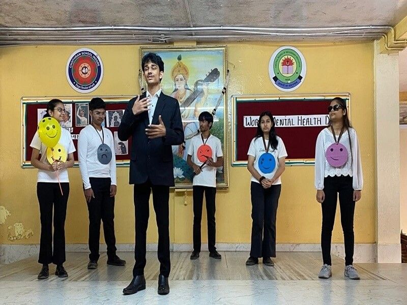 The students of Class XII F captivated the audience with a thought-provoking play on World Mental Health Day, titled “Balance Within.” The skit beautifully portrayed the inner emotional conflicts of a student, Aditya, as he struggled between joy, confidence, anxiety, sadness, and anger. Through engaging dialogues and expressive performances, the play emphasized that every emotion plays a vital role in shaping one’s well-being. The message of emotional balance, self-awareness, and acceptance left the audience deeply moved and inspired.
