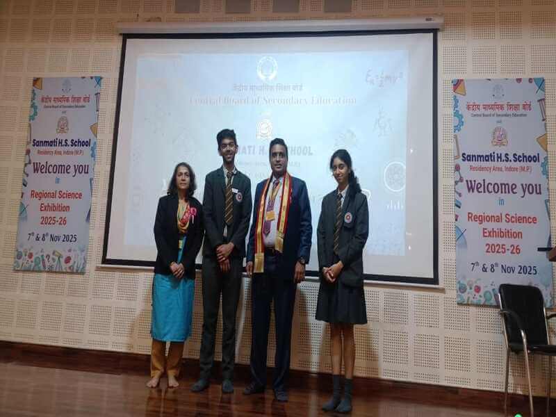 Choithram School, Manik Bagh, once again showcased its brilliance in science and innovation at the CBSE Regional Science Competition held at Sanmati Higher Secondary School, Indore. The senior team—Daksha Sharma (X F) and Padmakshi Sharma (X C) secured top honours with their outstanding project, while the junior innovators Harsh Sharma (VIII E) and Raghav Billore (VIII A) won accolades for their model AarogyaPath, adjudged the best presentation under the Health and Hygiene category. Their creativity, confidence, and scientific excellence brought immense pride and recognition to the school.