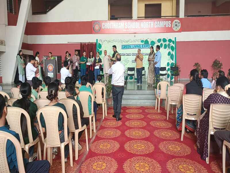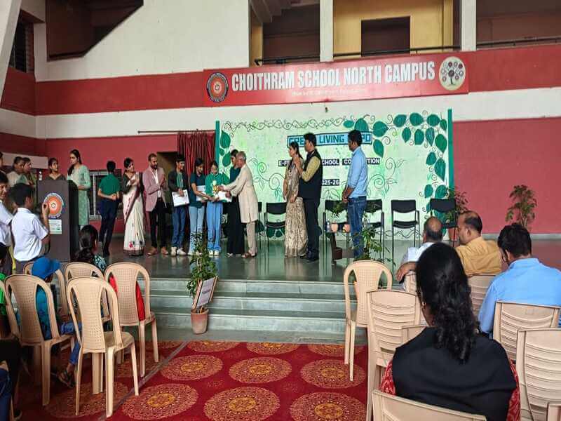 Students of the Eco Club enthusiastically participated in the Interschool Eco Fest “Green Living Expo” organized by the Eco Club of Choithram School, Nipania. The event, themed “Sustainable Lifestyle – Innovative Ideas for Saving the Environment,” encouraged young minds to present creative solutions for a greener planet. The Choithram team’s model “Trivasha” stood out and won the Best Presentation Award for its innovative use of eco bricks, eco coolers, and solar-powered lights, showcasing originality, teamwork, and a deep commitment to sustainability and environmental awareness.