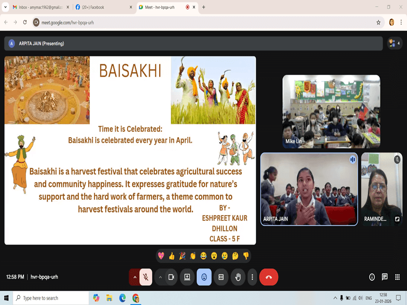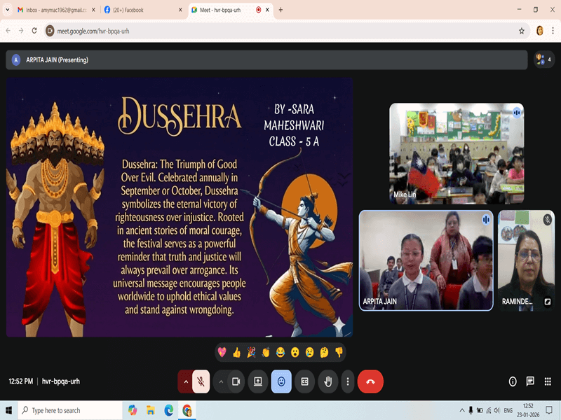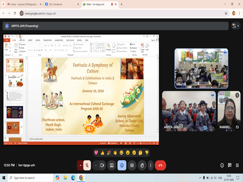 A video conference was successfully conducted between the Grade V students of CSMB and Anxing Elementary School, Zhubei City, Taiwan on January 23, 2026. The session began with a presentation by the Taiwan students on their Lunar Eclipse Festival, highlighting its cultural significance, traditions, and student artwork.