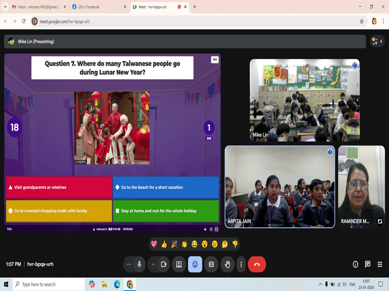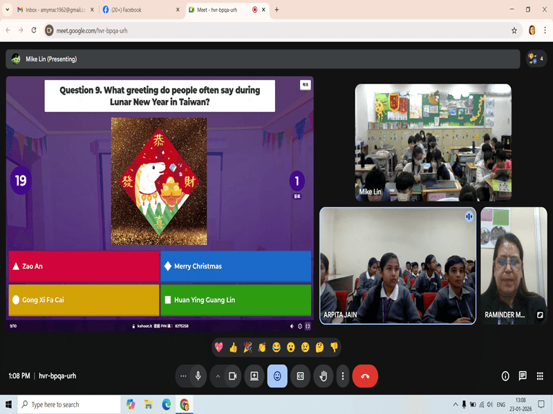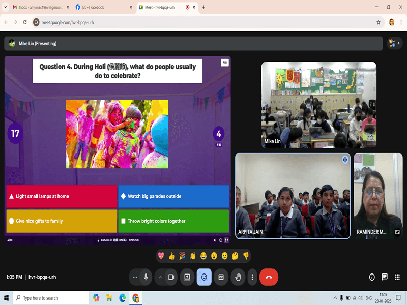 CSMB students then presented various Indian festivals, explaining their importance and cultural values, which showcased India’s rich diversity. An interactive Kahoot quiz conducted by the Taiwan students followed, reinforcing learning in an engaging manner.