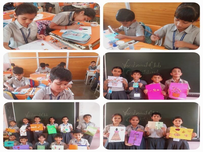 As a part of the Vocational Club’s activity, the students of classes V, exhibited their creativity by making paper cut outs and transferring the design on to a paper surface by applying paint. The paper stencil they created made them understand the use of stencils.